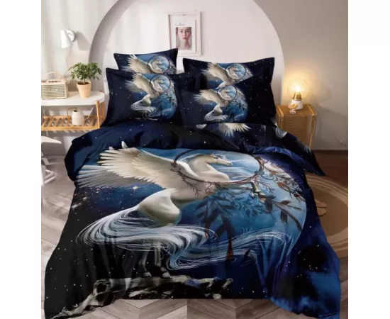 Lenjerie de Pat pentru 2 persoane cu 6 piese confectionata din Bumbac Finet 3D.