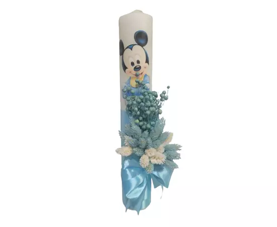 Lumânarea de botez cu plante stabilizate naturale este o piesă delicată și plină de semnificație, perfectă pentru a marca un moment special în viața unui copil. Această lumânare este realizată cu grijă și atenție la detalii, îmbinând elemente naturale și simboluri ale inocenței și bucuriei copilăriei.