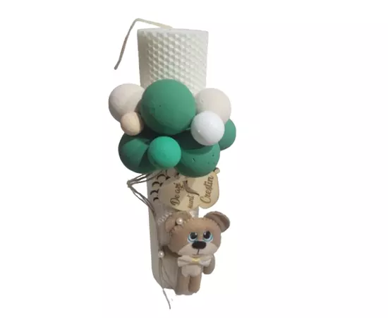 Lumanare Botez Tip Fagure, Baloane si Jucarie Din Fetru, Ceara Naturala - BAB114
