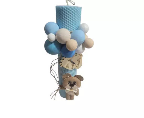 Lumanare Botez Tip Fagure, Baloane si Jucarie din Fetru, Ceara Naturala - BAB116