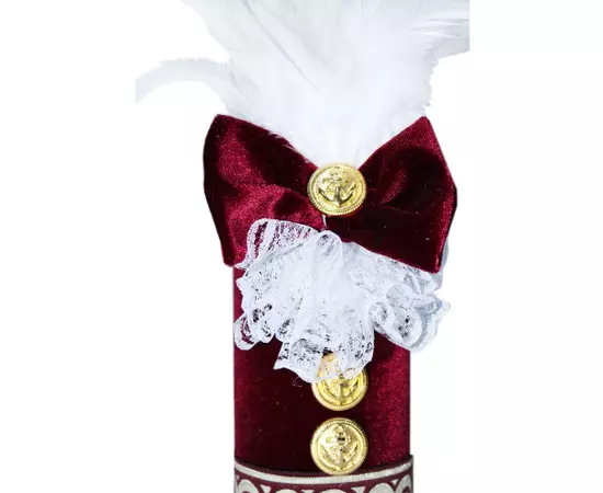 Papionul, subtil și distins, încununează lumânarea, adăugând un strop de eleganță și demnitate. În simbolistica sa, papionul poate reprezenta angajamentul față de credință și comunitate, precum și intenția de a păstra tradițiile și valorile într-un mod solemn și festiv.