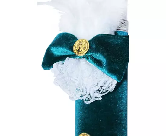 Papionul, subtil și distins, încununează lumânarea, adăugând un strop de eleganță și demnitate. În simbolistica sa, papionul poate reprezenta angajamentul față de credință și comunitate, precum și intenția de a păstra tradițiile și valorile într-un mod solemn și festiv.
