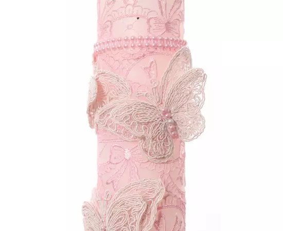 Dantela care îmbracă lumânarea aduce cu ea o notă de rafinament și delicatețe, sugerând importanța și solemnitatea evenimentului religios. Detaliile fine ale dantelei subliniază frumusețea și puritatea momentului botezului, accentuând semnificația sacrală a acestuia.