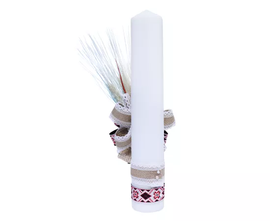 Lumanare Traditionala de Botez cu Spice de Grau si Panglica cu Motive Traditionale - LB01