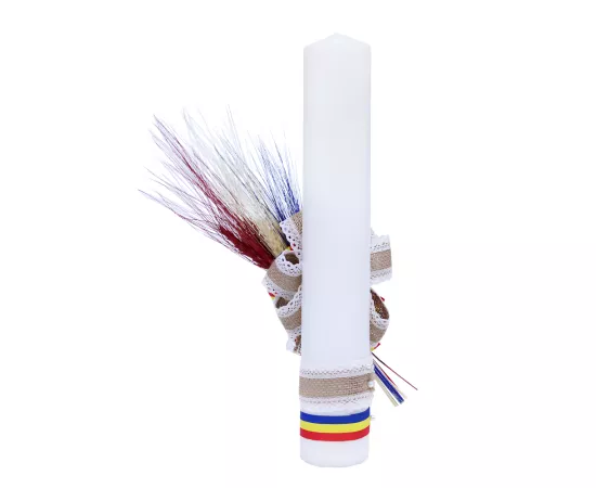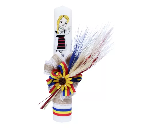 Lumanare Traditionala de Botez cu Spice de Grau si Panglica cu Motive Traditionale - LB02