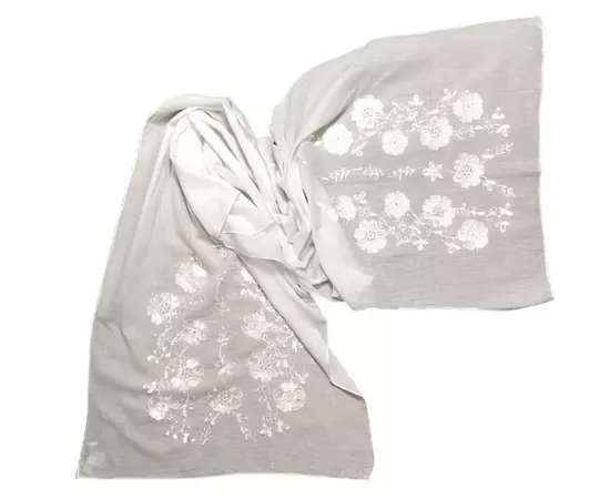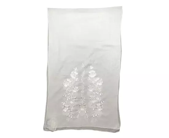 Marama traditionala alba din bumbac cu broderie alba cusuta cu fir de matase, ideala pentru a fi purtata si pe post de esarfa sau sal.