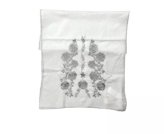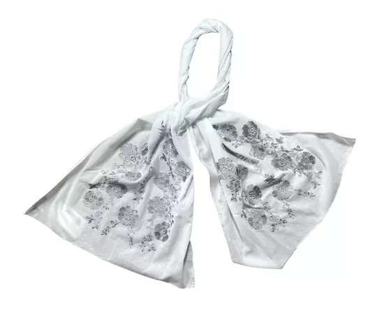Marama traditionala alba din bumbac cu broderie argintie cusuta cu fir de matase, ideala pentru a fi purtata si pe post de esarfa sau sal.