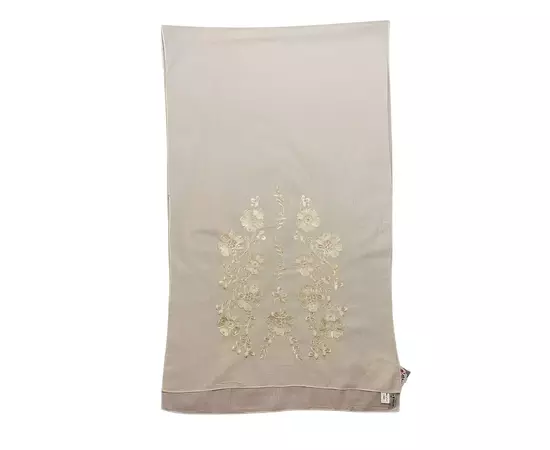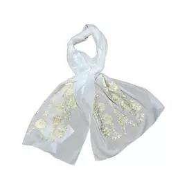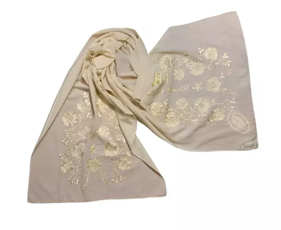 Marama traditionala crem din bumbac cu broderie aurie cusuta cu fir de matase, ideala pentru a fi purtata si pe post de esarfa sau sal.