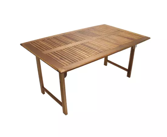 Masa este fabricata din lemn esenta exotica (acacia) special tratat pentru o durabilitatea cat mai mare in timp. Forma blatului este dreptunghiulara si are o grosime de 22 mm. Poate fi folosita atat la interior cat si la exterior, pe terasa sau in gradina.