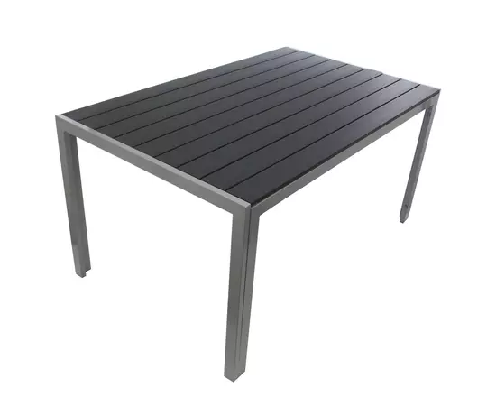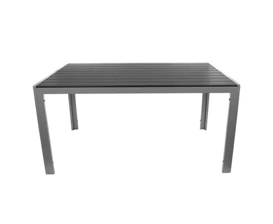 Structura mesei este fabricata din aluminiu, iar blatul din material plastic, ce imita foarte bine sipcile din lemn.
