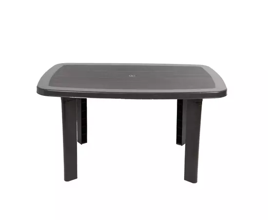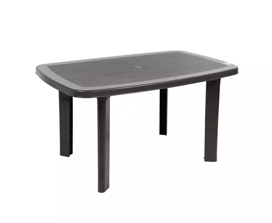 Masa fabricata din polipropilena, maro, are blatul de forma ovala poate fi utilizata, in functiei de nevoi, pe terase, in gradina sau in interiorul locuintelor.