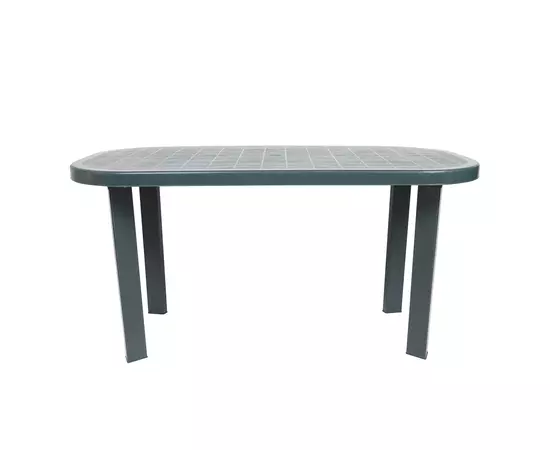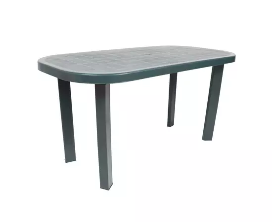 Masa fixa pentru gradina, plastic, ovala, verde, 6 persoane, 140 x 70 x 70 cm