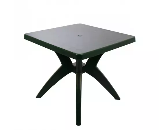Masa este fabricata din material plastic, culoare verde, cu dimensiunile 80x80x72 cm.