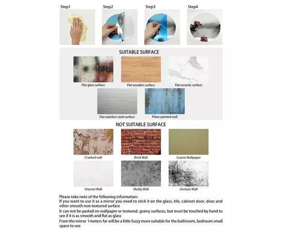 Oglindă decorativă autoadezivă din material acrilic. Ideal ca și element de decorațiune interioară.
