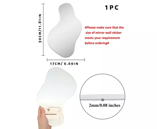 Oglinda Decorativă Autoadezivă, Formă Neregulată, Rotunjită, 17x30 cm