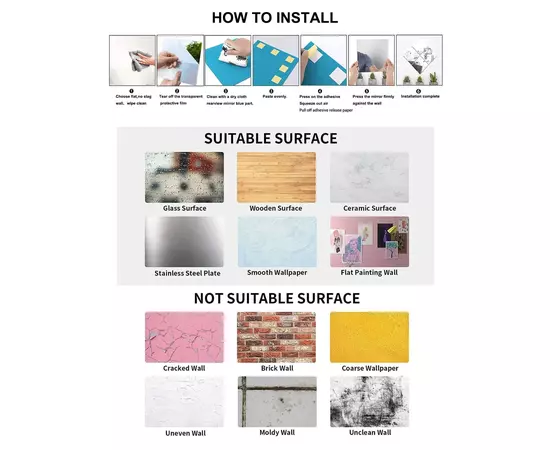 Oglindă decorativă autoadezivă din material acrilic. Ideal ca și element de decorațiune interioară.