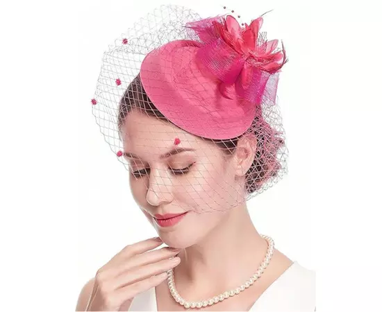 Accesoriu Palarie Dama, cu Funda si Voal Roz - 48405