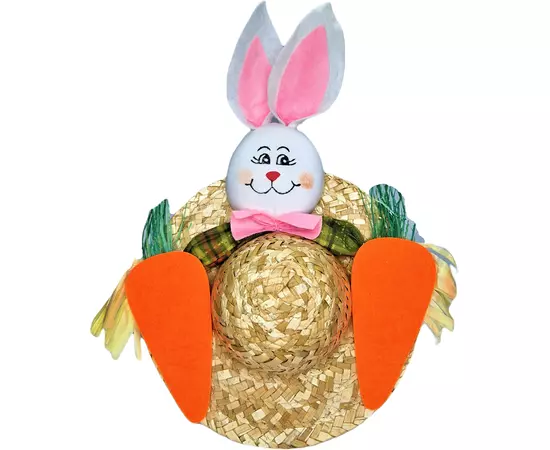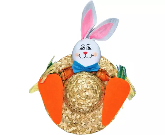 Palarie de Paie cu Iepure si Morcov de Paste, 25 cm