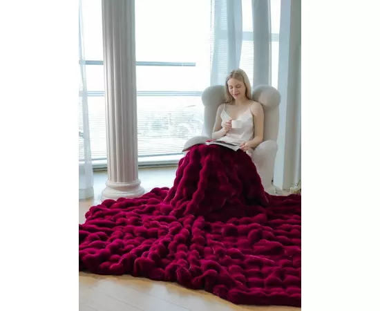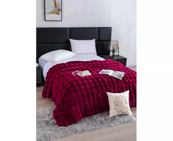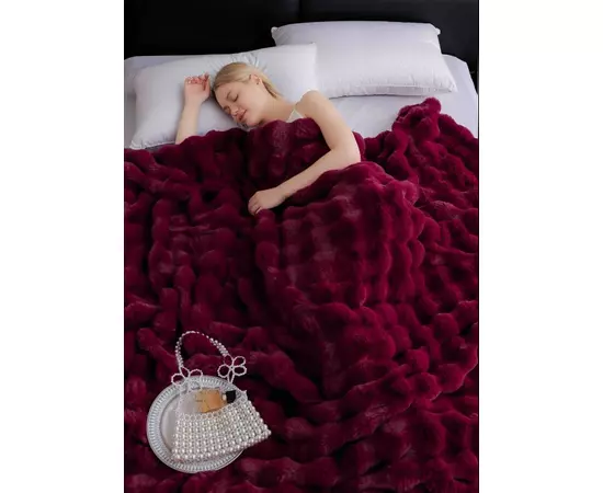 Patura Cocolino cu Blanita Artificiala de Iepure pentru Pat Dublu, Bordo - JOJ615