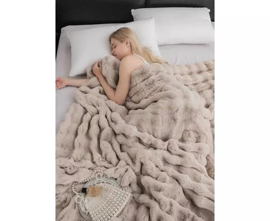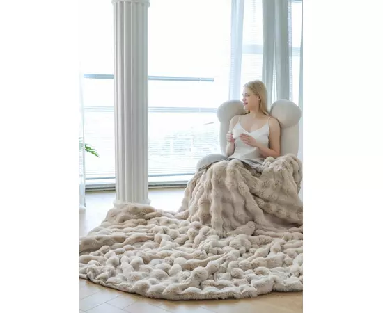 Patura Cocolino cu Blanita Artificiala de Iepure pentru Pat Dublu, Crem - JOJ616