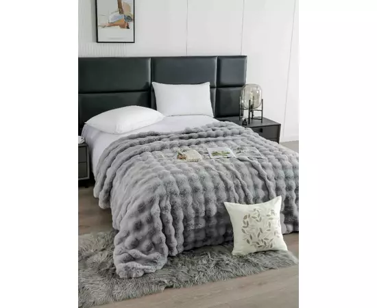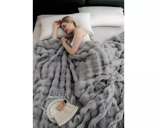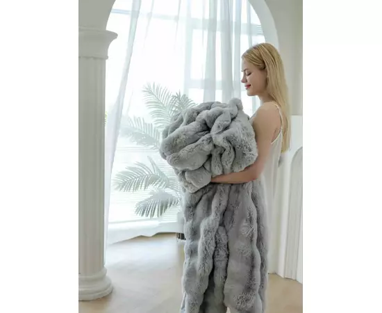 Patura Cocolino cu Blanita Artificiala de Iepure pentru Pat Dublu, Gri Deschis - JOJ618