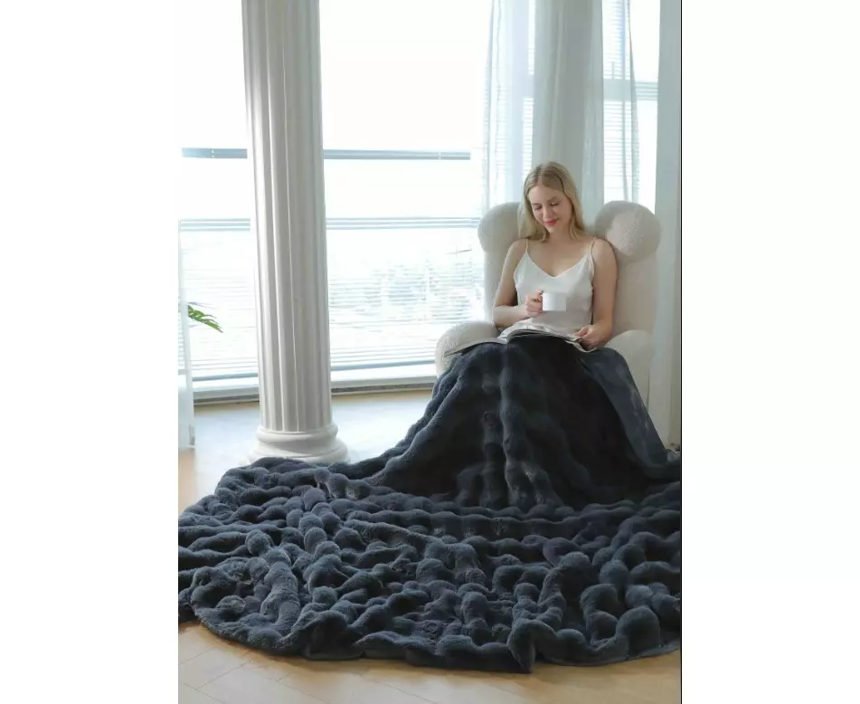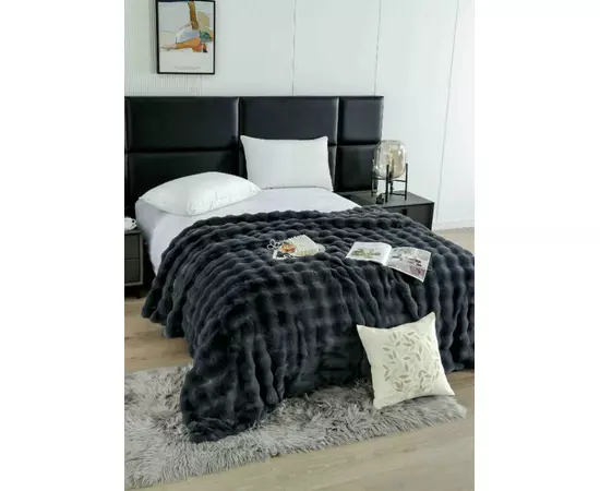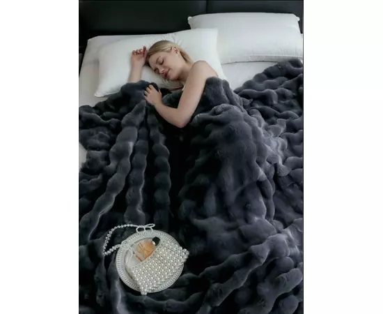 Patura Cocolino cu Blanita Artificiala de Iepure pentru Pat Dublu, Gri Inchis - JOJ619