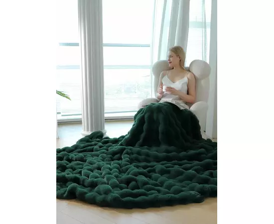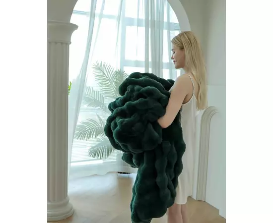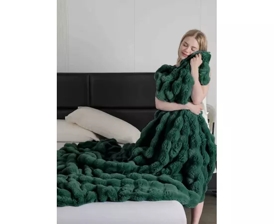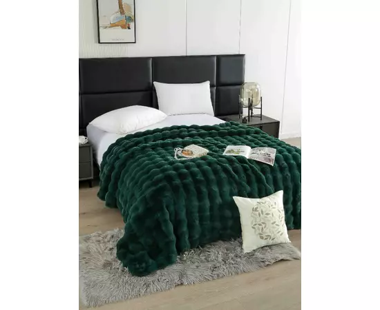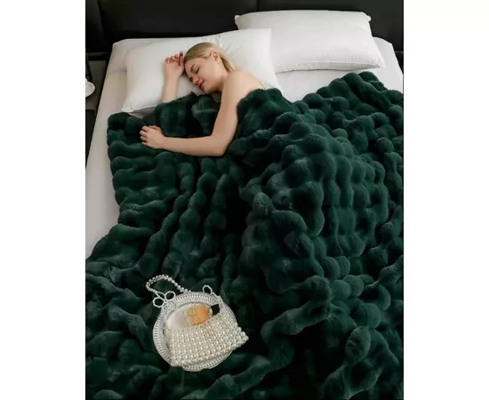 Patura Cocolino cu Blanita Artificiala de Iepure pentru Pat Dublu, Verde Inchis - JOJ622