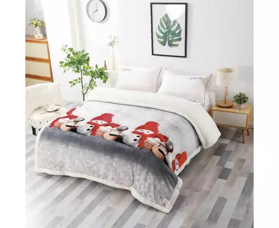 Patura Cocolino cu Blanita, Model de Craciun 200x230, Gri cu Om de Zapada - SUZ28