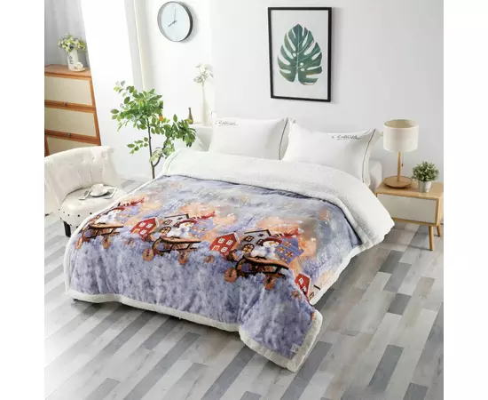 Patura Cocolino cu Blanita, Model de Craciun 200x230, Om de Zapada si Casute - SUZ21