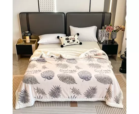 Patura Cocolino cu Blanita pentru Pat Dublu, Frunze, Crem - JOJ733