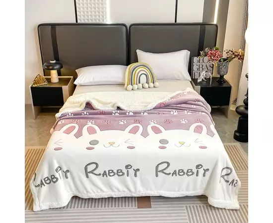 Patura Cocolino cu Blanita pentru Pat Dublu, Iepure, Roz - JOJ734