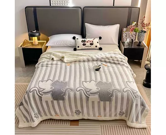 Patura Cocolino cu Blanita pentru Pat Dublu, Pisici Gri - JOJ630