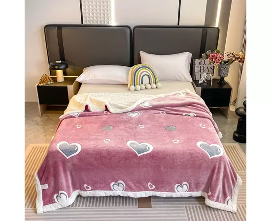 Patura Cocolino cu Blanita pentru Pat Dublu, Roz, cu Inimi - JOJ728