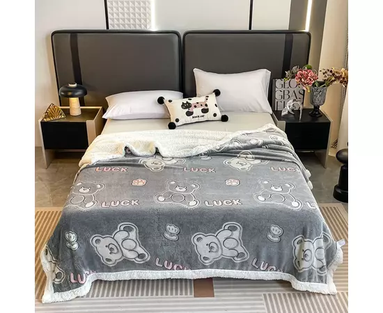 Patura Cocolino cu Blanita pentru Pat Dublu, Ursuleti, Gri - JOJ731