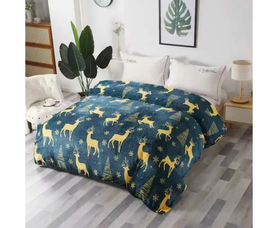 Designul specific de Crăciun este vibrant și festiv, cu elemente precum fulgi de zăpadă, reni, brăduți sau alte motive de sărbătoare, toate în culori clasice de roșu, alb, verde sau albastru, care completează atmosfera magică de sărbători. Dimensiunile generoase (200x230 cm) fac pătura ideală pentru a fi folosită pe un pat matrimonial sau pe canapea, aducând o notă decorativă aparte în locuința ta.
