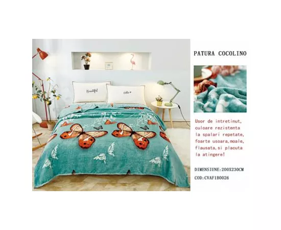 Textura materialului este moale, placuta la atingere, usor lucioasa in lumina iar tesatura este plina. Tip inchidere: cearceaful pentru pilota se inchid cu fermoar.