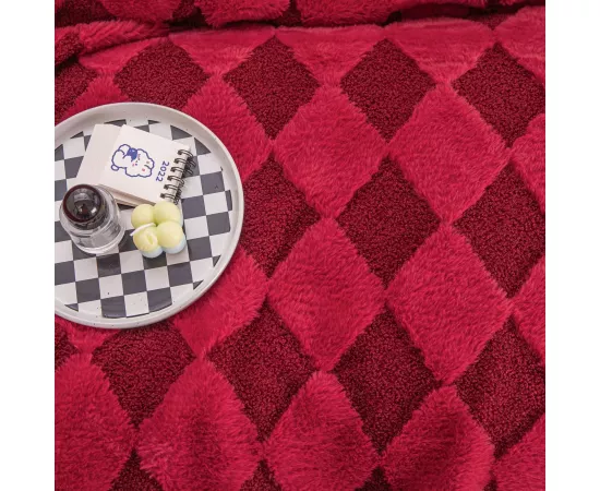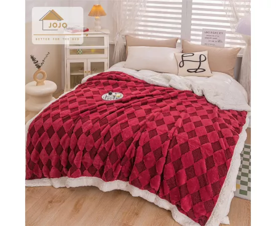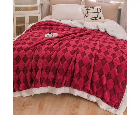 Patura Cu Blanita Artificiala de Iepure + Catifea Teddy, Grena -JO367