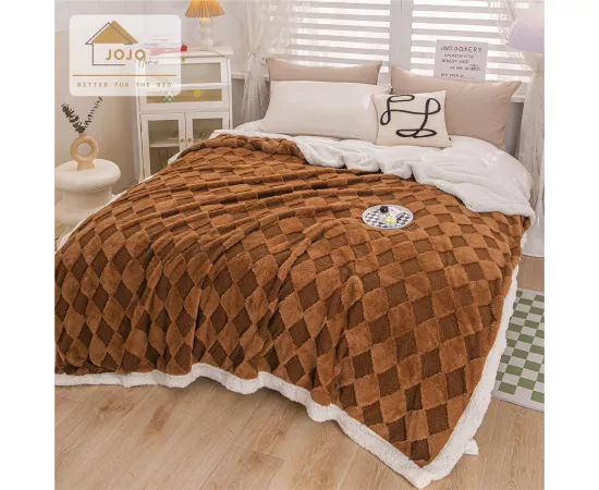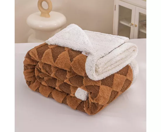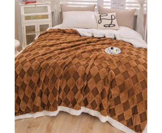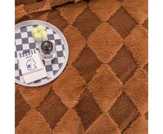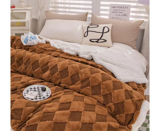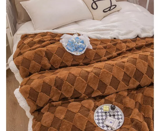 Patura Cu Blanita Artificiala de Iepure + Catifea Teddy, Maro -JO369