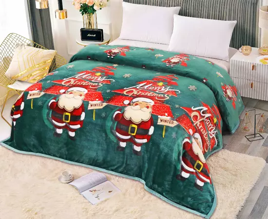 Patura de pat cu imprimeu modern, cu Mos Craciun.