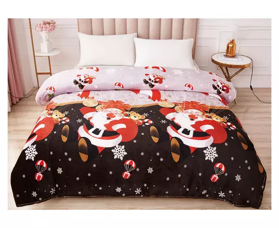 Patura de pat cu imprimeu modern, cu Mos Craciun.