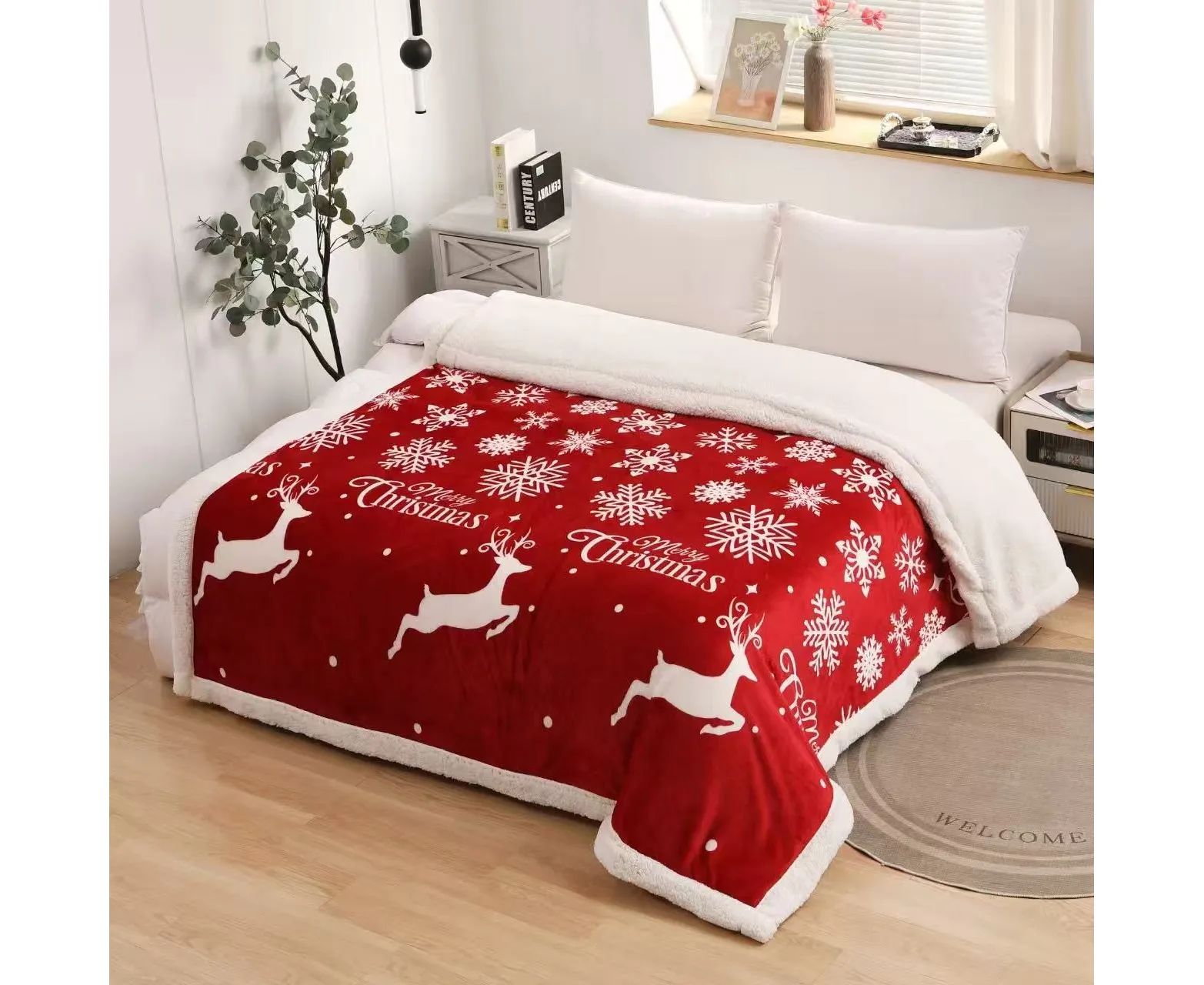 Patura de pat cu imprimeu modern, cu Mos Craciun.