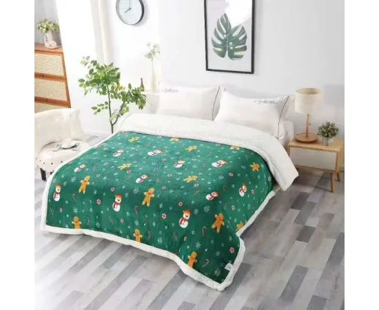Patura de pat cu imprimeu modern, cu Mos Craciun.
