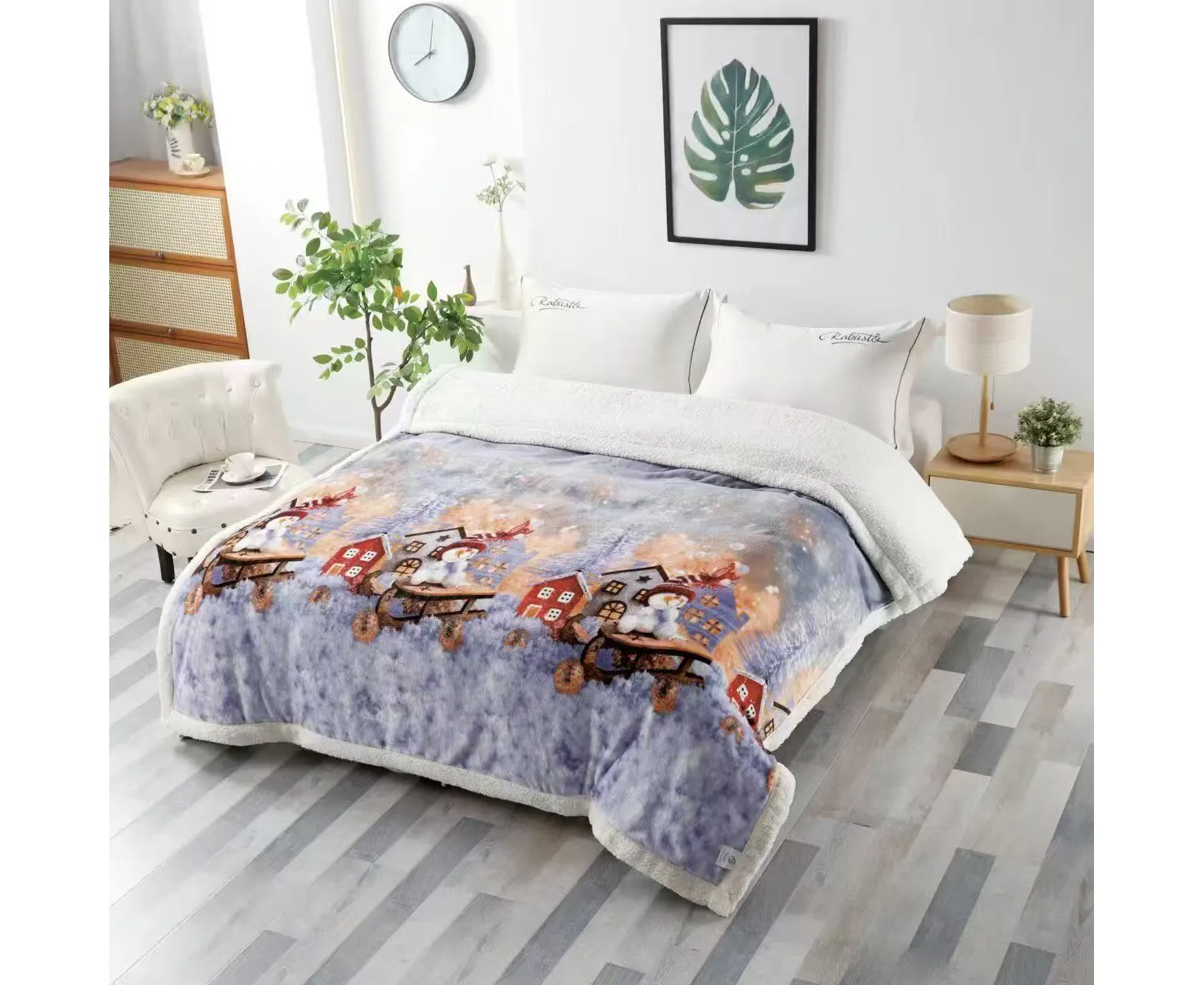 Patura de pat cu imprimeu modern, cu Mos Craciun.