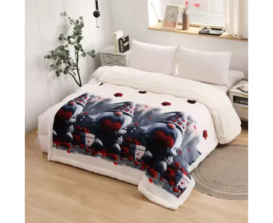 Patura de pat cu imprimeu modern, cu Mos Craciun.