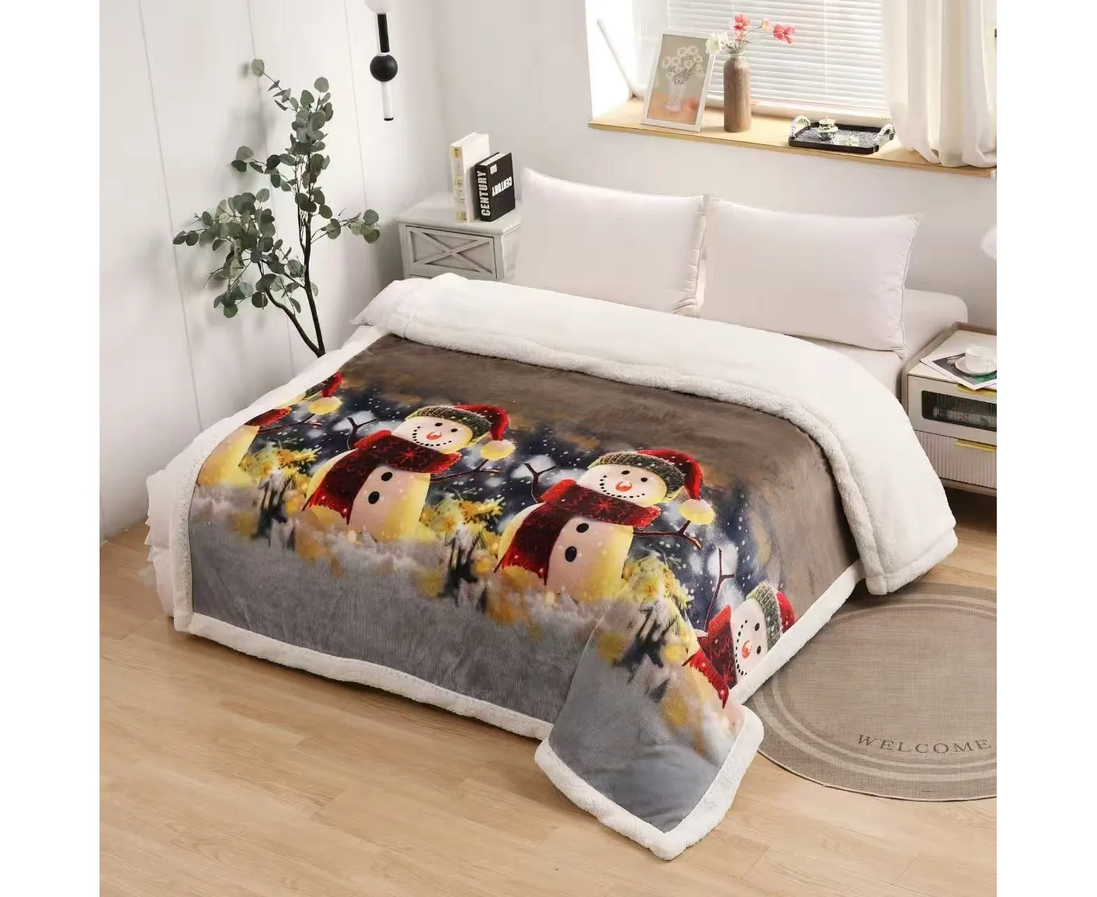 Patura de pat cu imprimeu modern, cu Mos Craciun.