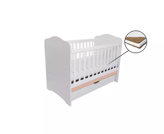 Patut Eurogloria Como cu sertar - Alb cu Cappucino + Saltea Cocos 10 cm