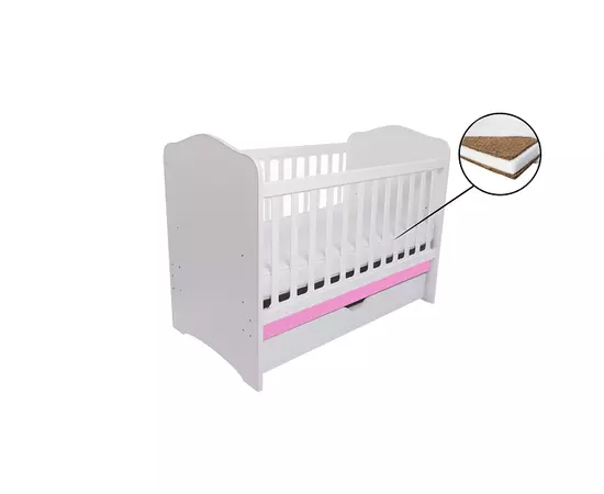 Patut Eurogloria Como cu sertar - Alb cu Roz + Saltea Cocos 10 cm
