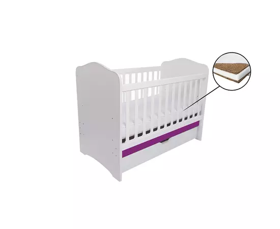 Patut Eurogloria Como cu sertar - Alb cu Violet + Saltea Cocos 10 cm