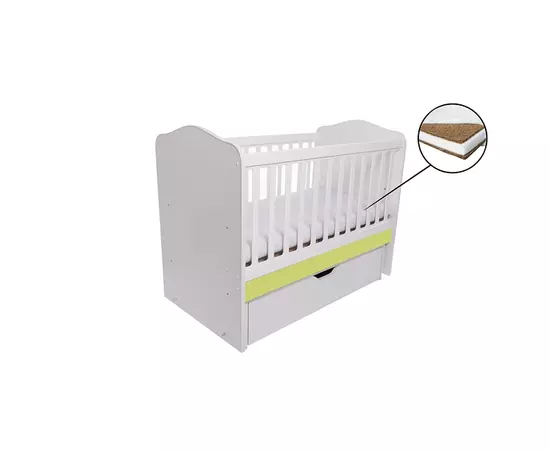 Patut Eurogloria Como Balansoar - Alb cu Verde + Saltea Cocos 7 cm