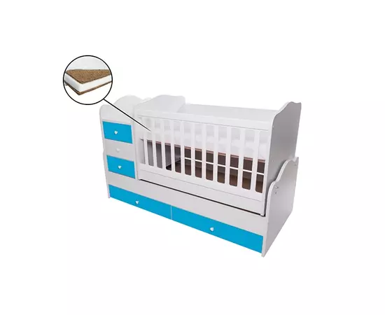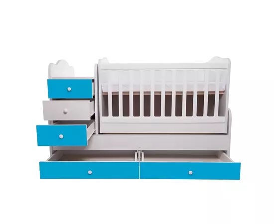 Comoda patutului poate fi folosita ca si suport pentru schimbat scutece si este detasabila.